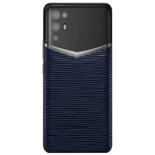 Mặt sau điện thoại được làm từ da bê với nhiều phiên bản màu sắc. Máy được chế tác hoàn toàn thủ công bởi bàn tay của các nhà thủ công hàng đầu, cho thấy sự độc bản và tỉ mỉ trong từng chi tiết. Phía trên là dải kim loại hình chữ V – biểu tượng đặc trưng của thương hiệu Vertu, tạo ra sự sang trọng và điểm nhấn cho tổng thể.
