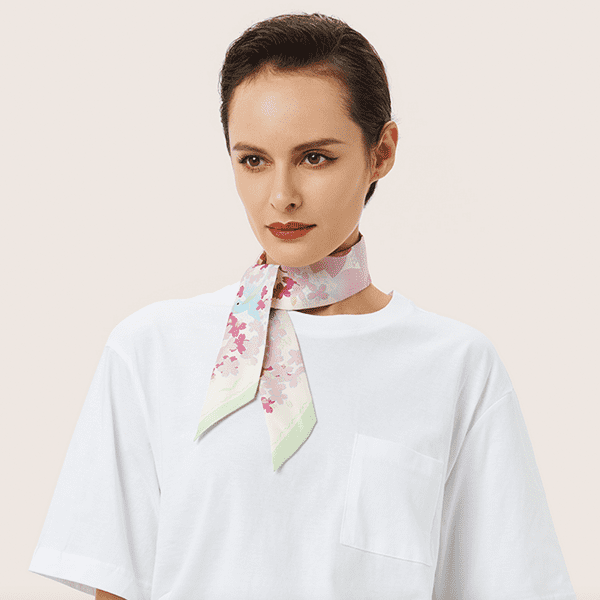 VERTU Season-Daigo Bandeau Pink sử dụng chất liệu lụa thật cao cấp mang lại cảm giác mềm mượt, cùng việc thiết kế trang nhã với hoạ tiết những chiếc bông nhỏ kết hợp với mắt thẩm mỹ tinh tế của những nghệ nhân, chọn lọc những màu sắc hài hoà, toát lên vẻ đặc sắc riêng của chiếc khăn, bên dưới góc khăn in logo thương hiệu Vertu trứ danh.